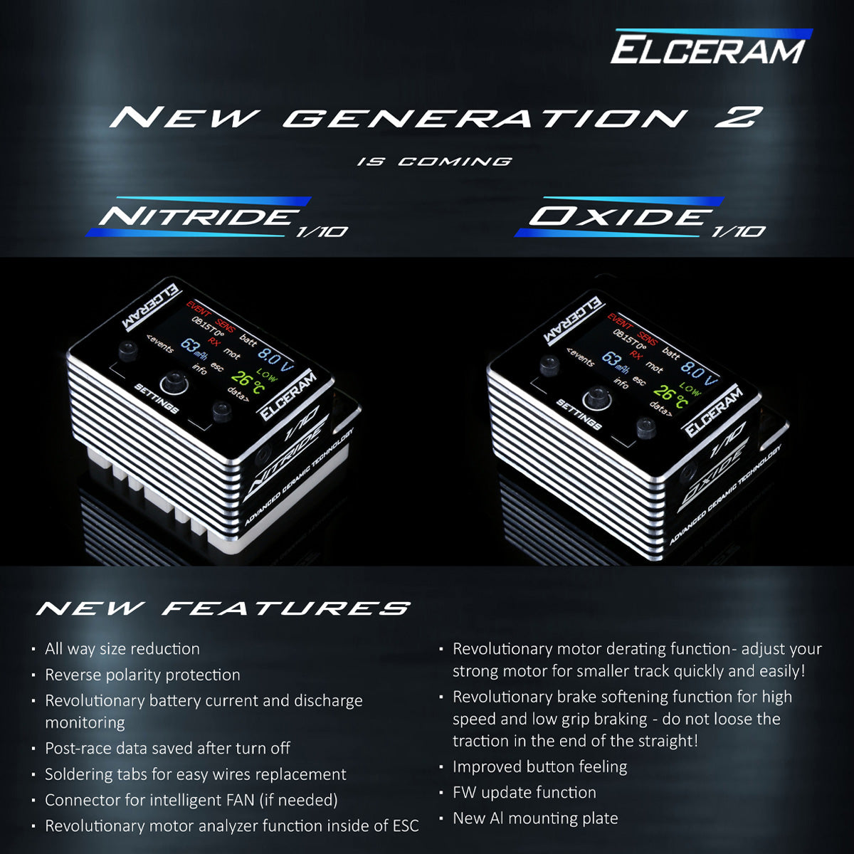 *Pre-order* Elceram Generation 2 1/10th Nitride/Oxide Brushless ESC with LCD Display