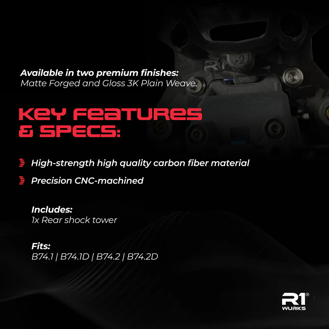 R1 Wurks 900190 Rear Carbon Fiber Shock Tower -2mm for B74